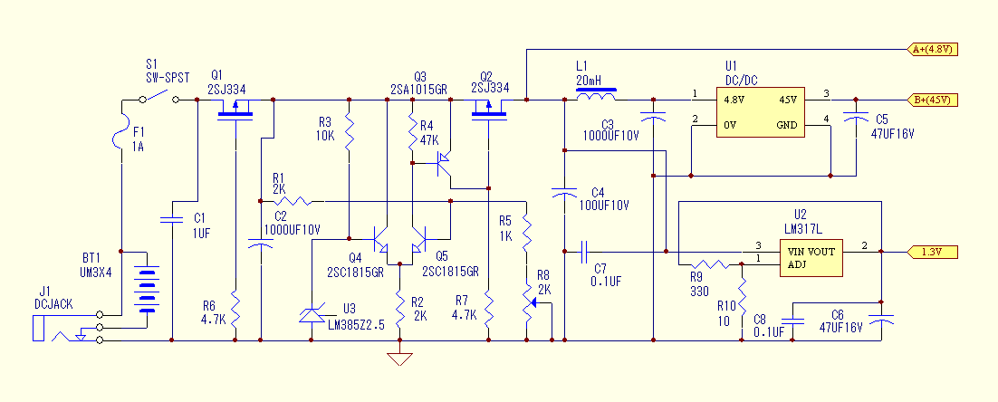 1.3Vの電圧は電池管のヒーター電圧として用意しました。