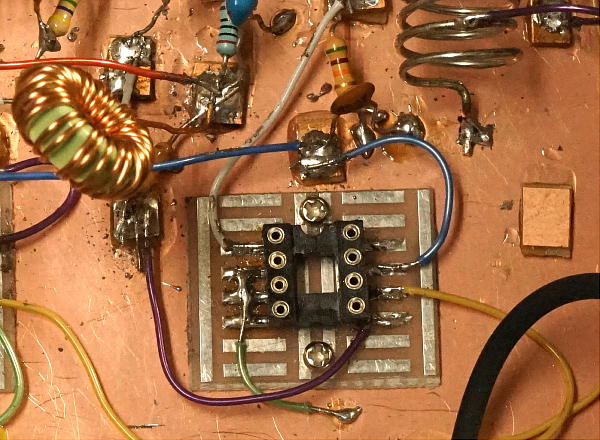 球側もリード線を短く切って挿入するのが大変なので一旦、ICソケットに半田付けしたものを装着します。