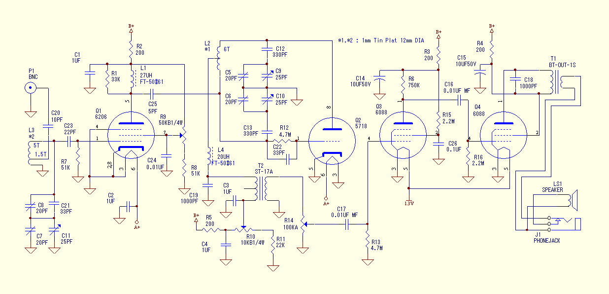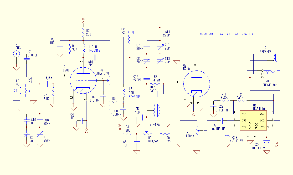 回路は前作「超再生傍熱管FMラジオ(3)」と同じですので省略します。